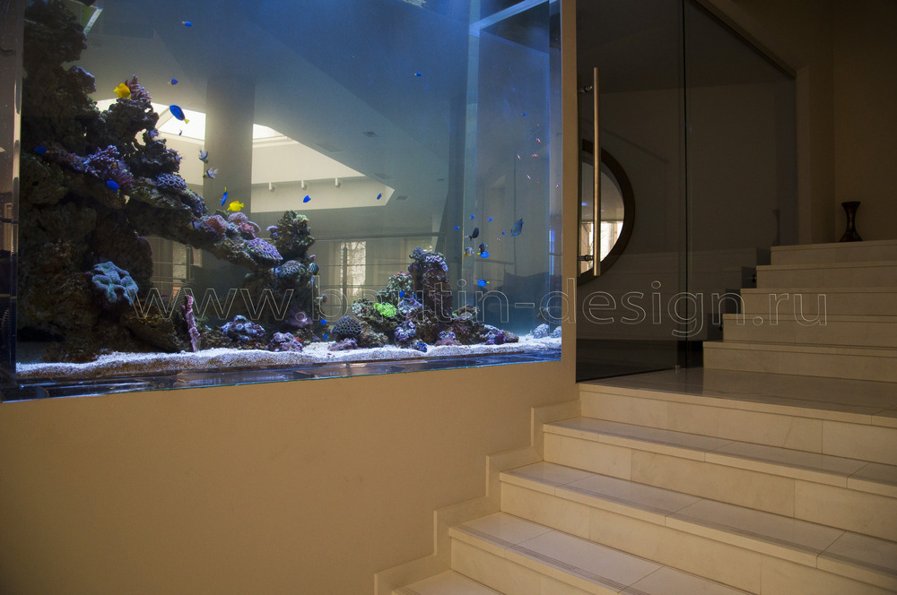 Многих клиентов, которые приходят к нам с просьбой создать аквариум на заказ для загородного дома или квартиры, интересует, насколько эффектно будет выглядеть и насколько гармонично впишется новый элемент в интерьер помещения. Отвечая на этот вопрос, в первую очередь следует сказать, что чем аквариум крупнее, тем больше появляется возможностей у дизайнеров и архитекторов с высокой долей реалистичности воссоздать подводный пейзаж, экзотику и разнообразие подводного мира.