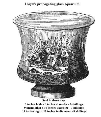 Первый аквариум, похожий на современные модели, был создан ученым из Англии, Х. Вардом, в 1841 году - аквариум объемом в 100 л воды стал домом для холодноводных рыб и растений. Вард предложил использовать резервуары для рыб в 1836 году. Уже в 1941 году был поставлен эксперимент, правда в экспериментальном аквариуме только растения были настоящими, а рыбки - игрушечными. Спустя пять лет создательницей сбалансированного аквариума с морской водой была оглашена Анна Тине - ее морские водоросли и кораллы сумели прожить в сосуде три года. Приблизительно в этот же период с тритцатигалонным резервуаром экспериментировал Роберт Уорингтон - в первом стационарном аквариуме проживали улитки, угри, золотые рыбки. Запатентовал свое изобретение Уорингтон в 1950 году.